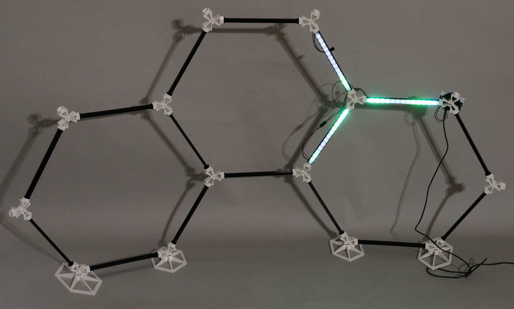 From there, you can remove most of the joints, rotate the structure on the side, curve it slightly and build a hex-wall.