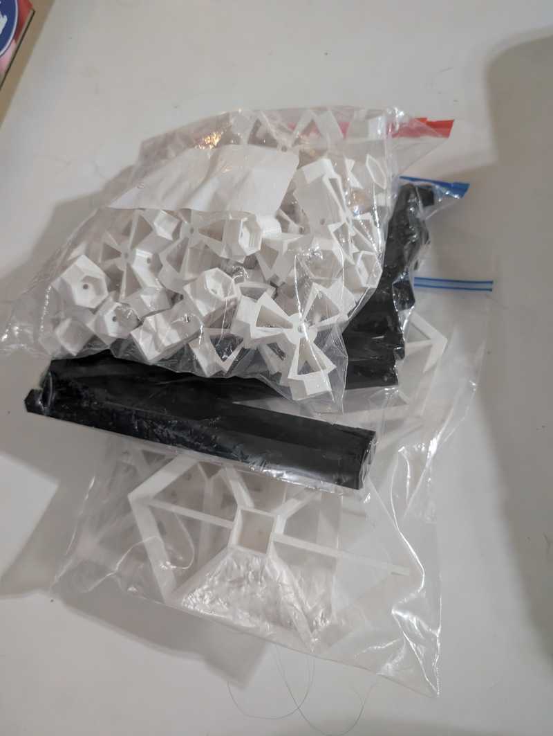 Thus, truss systems seemed to be a really good idea to make illuminated structures that would fit into a ziploc bag.