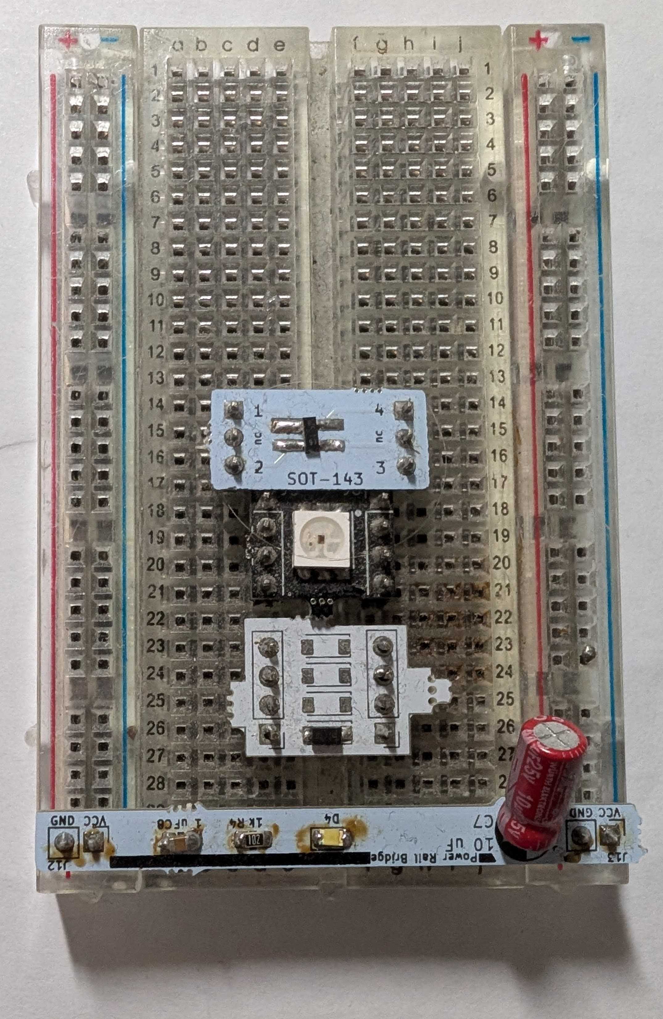 I have a set of perfboards that end up having the parts and shapes and patterns that seem to work for me and they work so much better, complete with a wider section that you can mount a Feather/BluePill/Teensy/Et al.